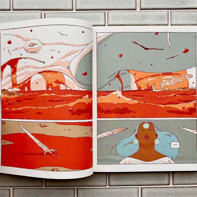 "It's back again! The award-winning, Eisner nominated, highly praised debut book from Linnea Sterte (author of A Frog in the Fall). An alien desert comes to life around the body of a dying whale. Animals, insects, and ancient peoples scramble for her remains, making their homes among her bones, struggling through a millennia-long process of decay. It’s a bit like a documentary. For fans of A Frog in the Fall, Avatar, and Moebius.